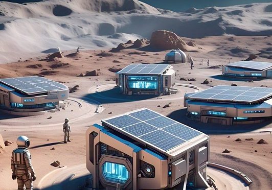 An example of one future possibility is using the Moon as a launchpad to produce solar cells for satellites or space stations. Since launching from the Moon takes far less energy than from Earth, a Moon-based solar factory could support a wider network of off-planet energy production.
